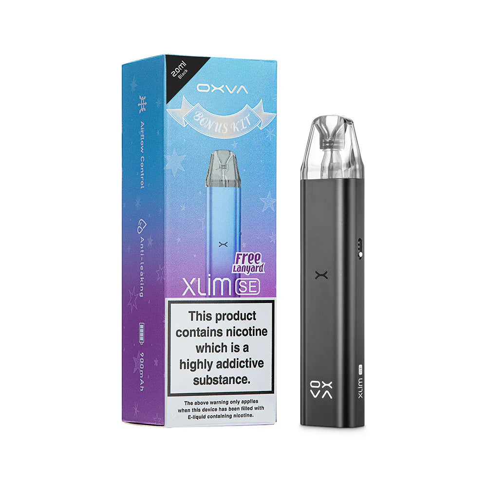 The OXVA Slim SE is a basic version of the xlim and features a built-in 900mAh Battery, Type C Charging, a 2ml pod and is designed for mouth to lung vaping.